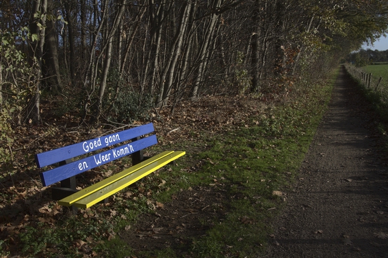 Bankje Afbeelding 5 van 5 Dit bankje staat in Aalten en is geschilderd in de kleuren van de Oekraïense vlag.